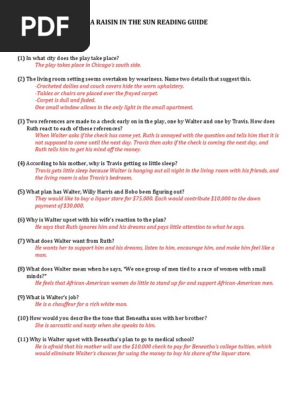 A Raisin In The Sun Reading Guide With Answers Family