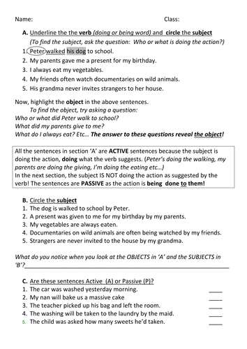 Ks3 Grammar Passive Voice Active Voice Teaching Resources