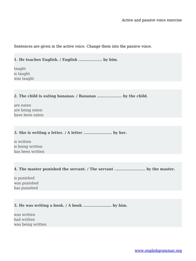 Exercise On Passive And Active Voice Worksheets Teapalon