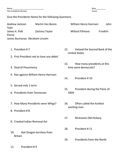 Andrew Jackson Worksheet