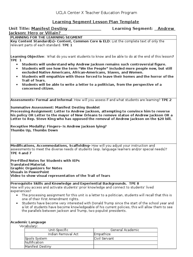 Andrew Jackson Learning Segment Educational Assessment