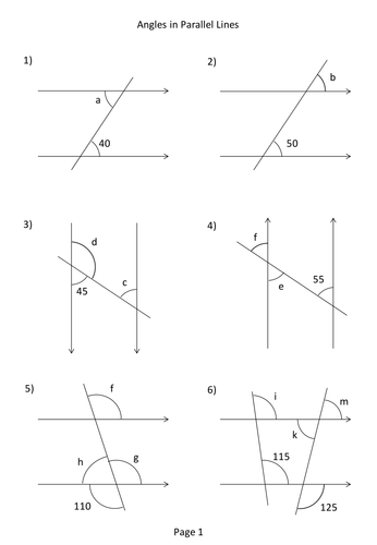 Printable Worksheets Angles On Parallel Lines A Maths Worksheet